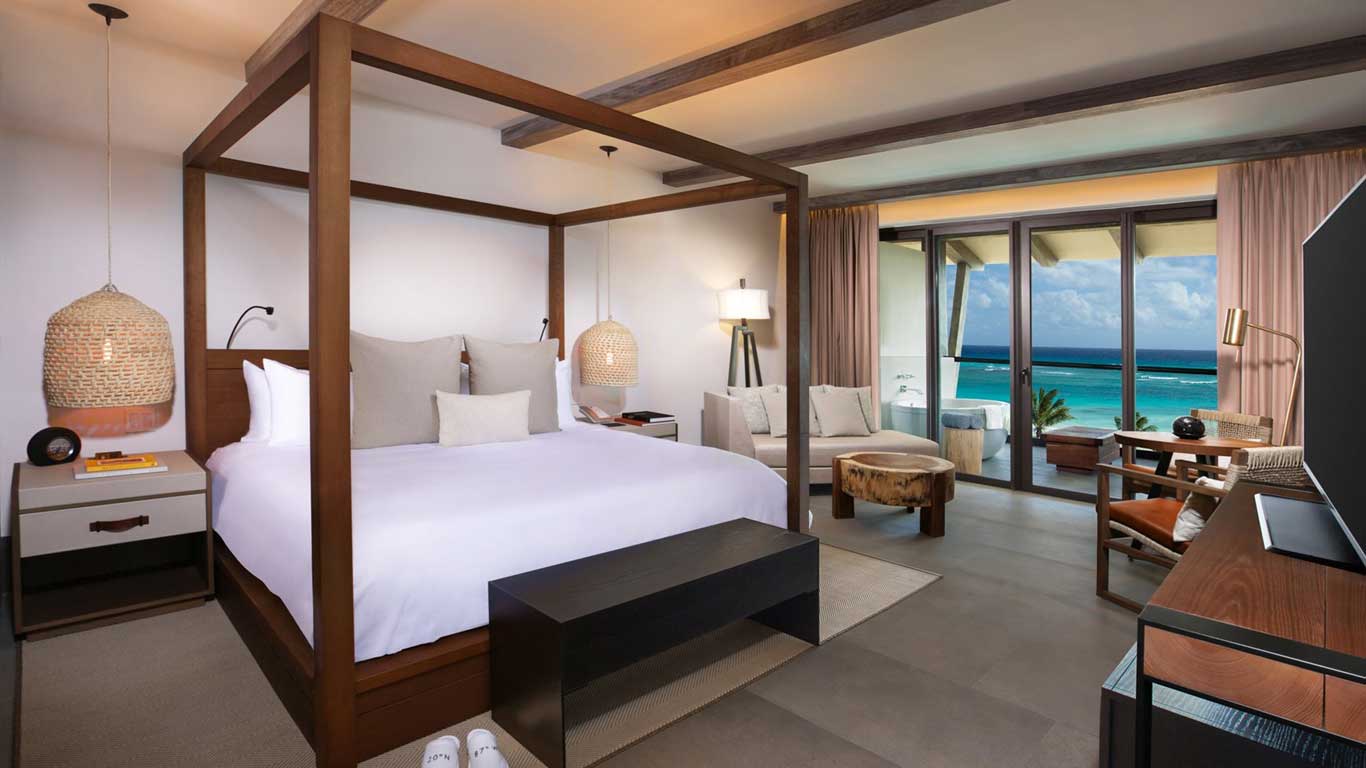 The rooms at UNICO Riviera Maya blend modern, minimalist luxury with handcrafted local accents, bold splashes of color, and thoughtfully curated details that capture the essence of the region.
